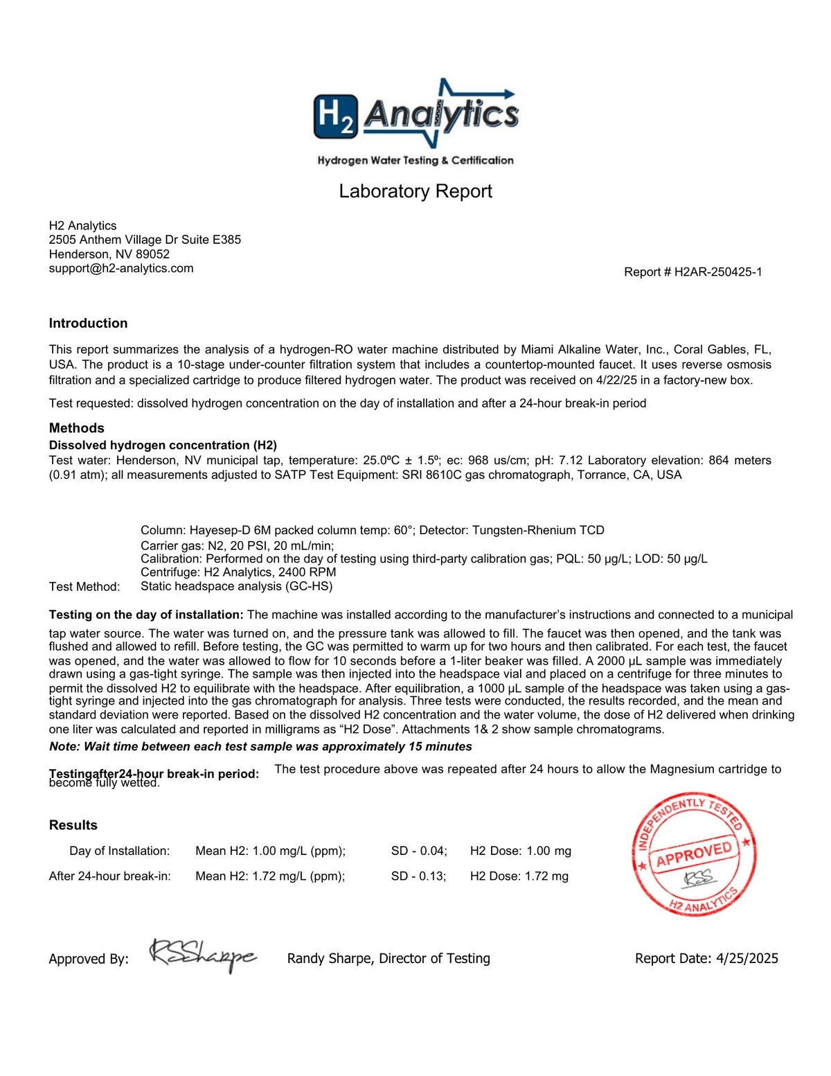 The system is tested by H2 Analytics, ensuring precision, purity, and superior performance.